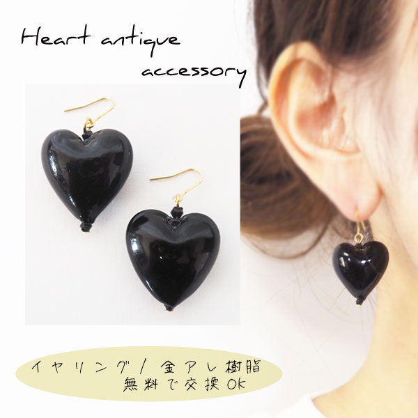 【メール便】ハート レトロ ピアス 大ぶり ブラック 金属アレルギー対応 レトロ イヤリング 大振り/ レトロ調 ロング スティック アンティーク ヴィンテージ 大人 トレンド カジュアル シンプル きれいめ 【金属アレルギー 樹脂 シリコン ノンホール K14GF ステンレス】