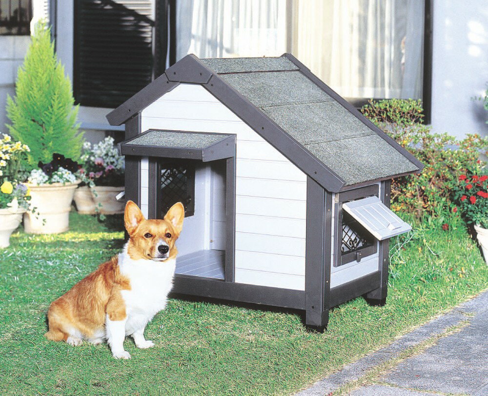 犬小屋 ケージ ペット 犬 小屋 現代的な住宅の色を意識したコテージ犬舎!グレー